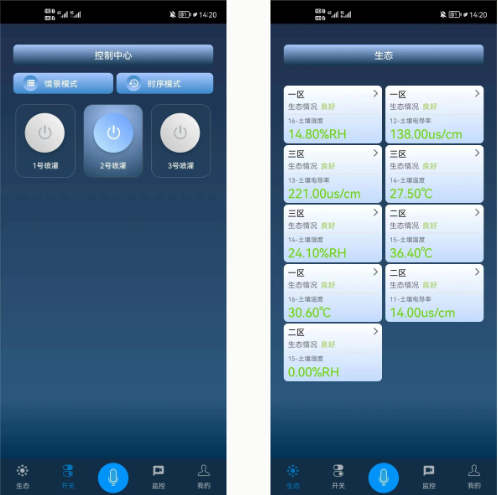 智 能 管 理:設(shè)備遠(yuǎn)程啟停、制定噴灌計(jì)劃智能節(jié)水算法、水肥一體化;