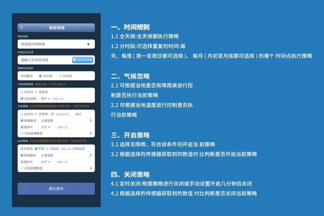 滴翠智能通過自研的基于植物生長AI模型的農業(yè)種植數字化控制云平臺,以物聯網、AI智能、云計算、智能策略等技術結合植物生長模型、病害識別以及種植環(huán)境中的傳感器數據(包括土壤溫度濕度PH值、磷鉀氮EC值等,種植環(huán)境溫濕度、氣壓、氣象等數據),配合前端APP或者PC人工操作設置數據進行二次AI計算,最終指導電控設備自主執(zhí)行水肥精準澆灌等操作,實現農業(yè)生產的智能化、數字化閉環(huán)。